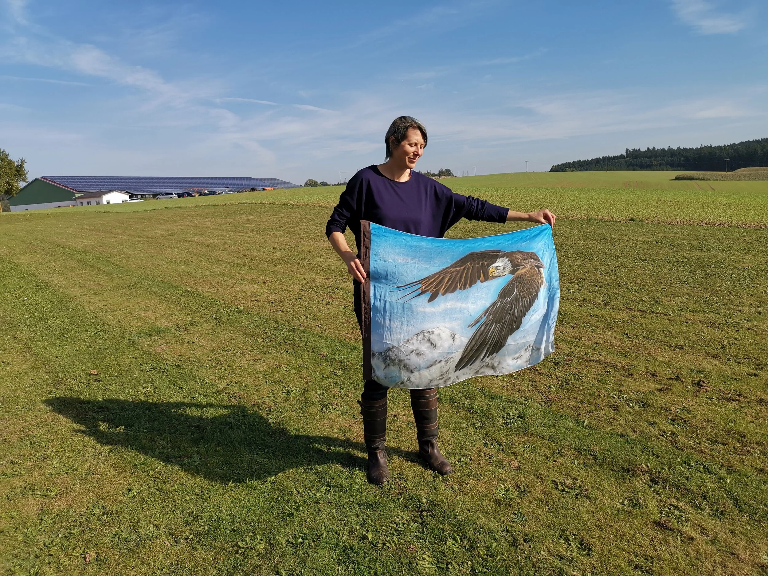 (aus versandtechnischen Gründen wird die Flagge nicht mit einem langen Stab geliefert - ein eigener längerer Stab kann aber eingefügt werden)